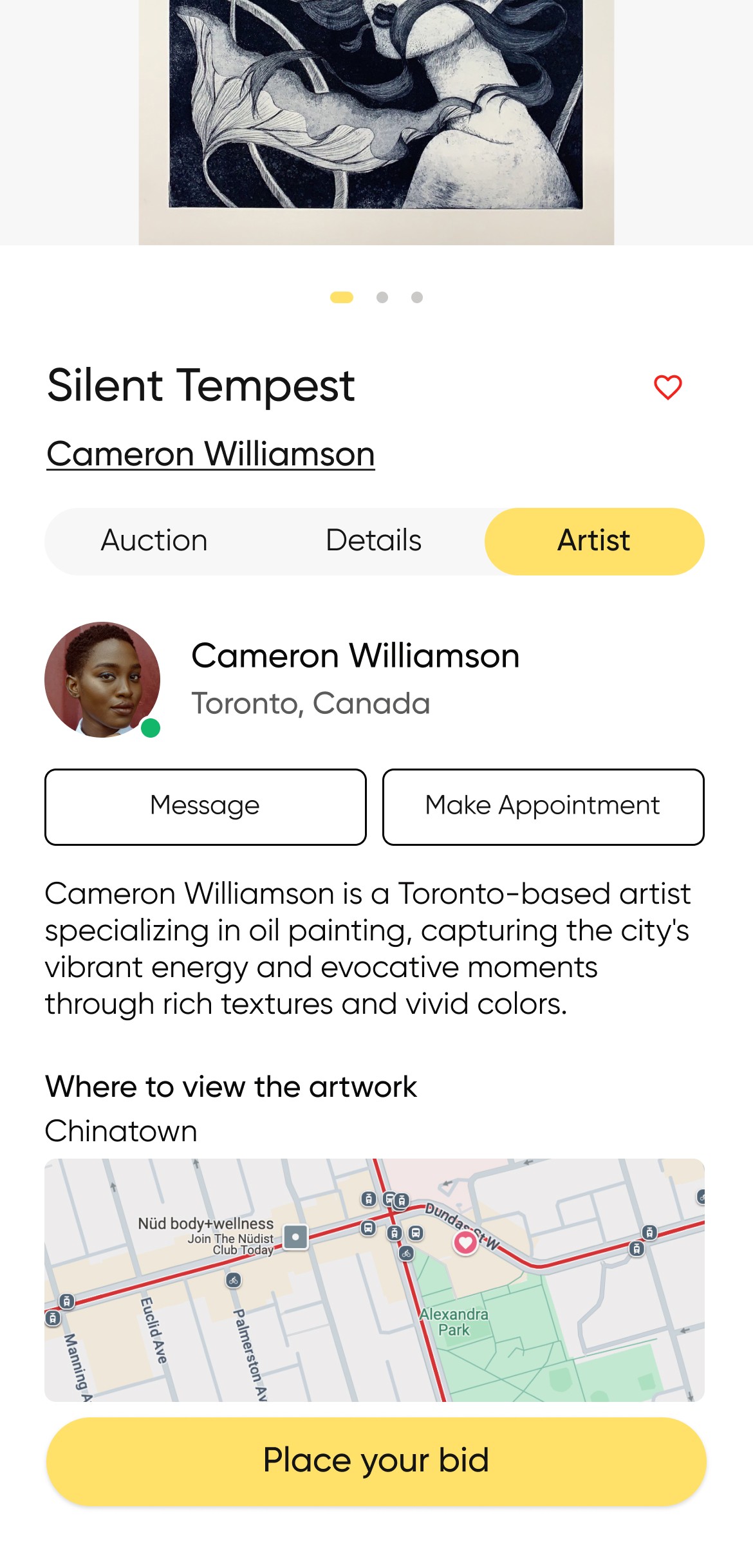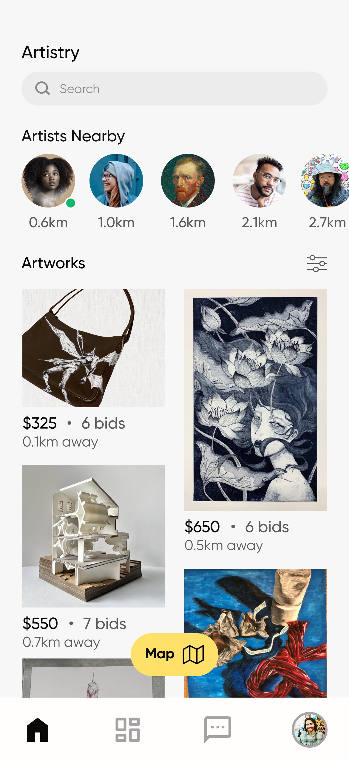 Artistry, a location-based digital art marketplace that maximizes the value of artists' work and strengthens connections between emerging artists and buyers within local communities.