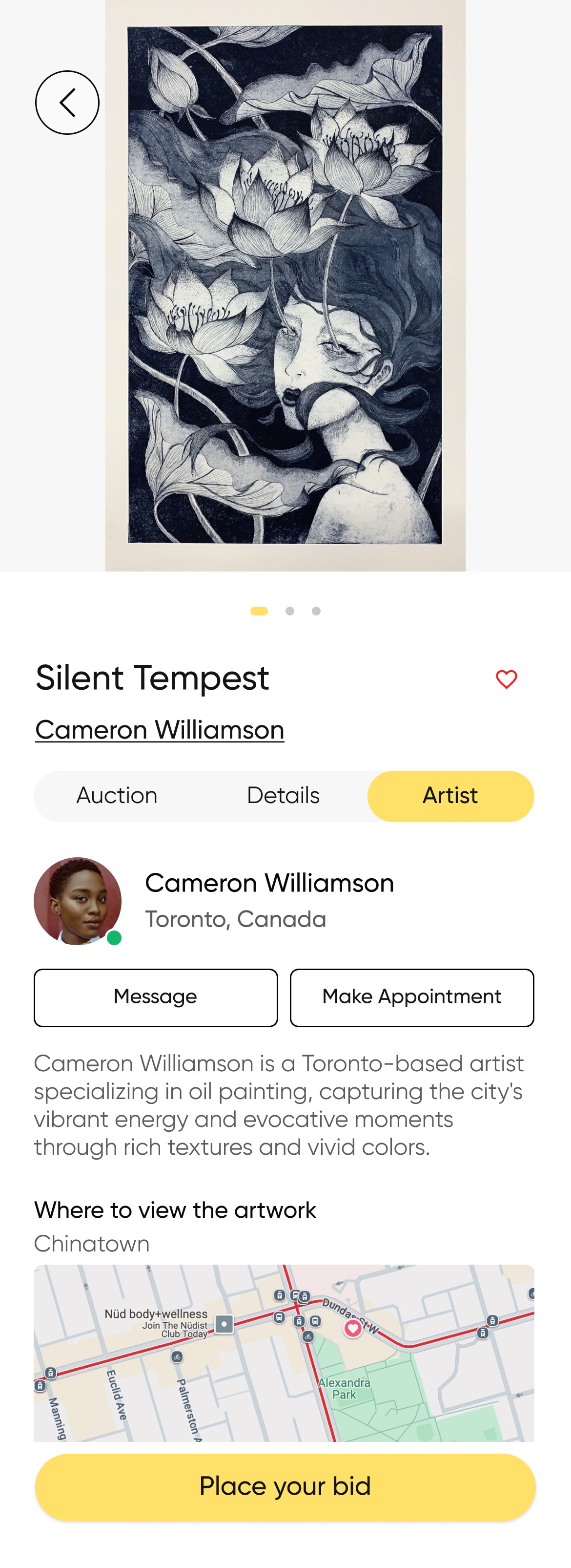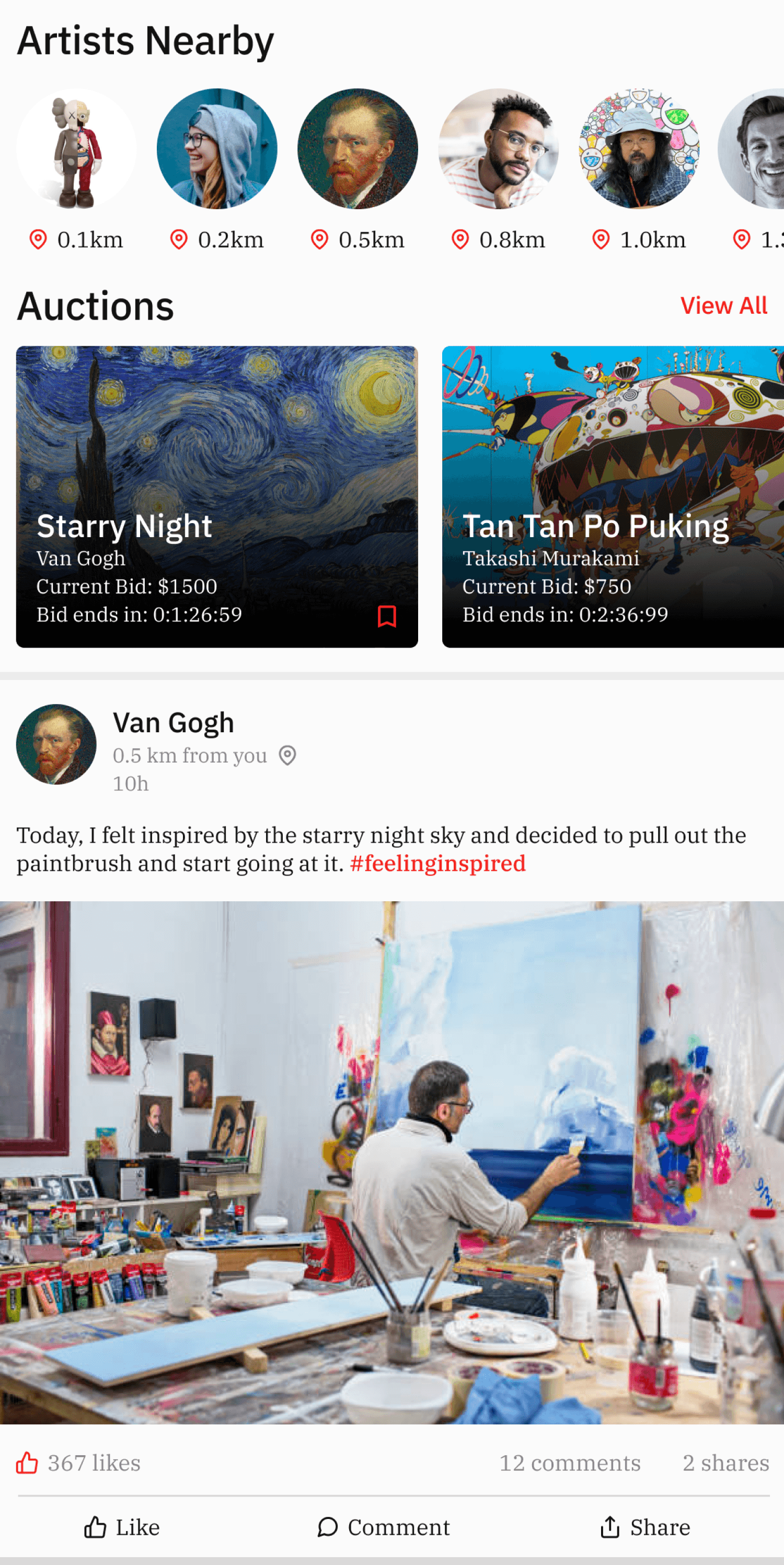 A location-based digital art marketplace that maximizes the value of artists' work and strengthens connections between emerging artists and buyers within local communities.